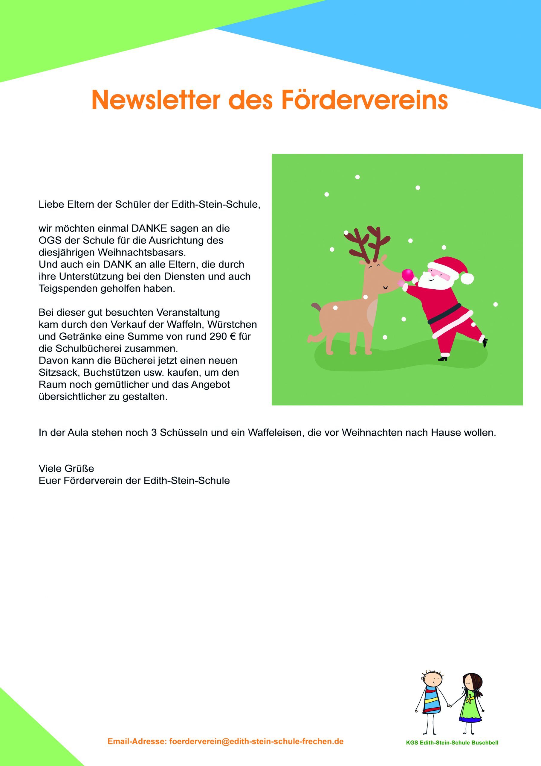 Hier die beiden Newsletter des Fördervereins aus dem letzten Jahr zu den Themen Weihnachtsbasar und Ernährungsprojekt: